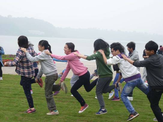 (1)游戏过程中队员必须跳步前进,不允许松手(一直保持抬起前边的人的左腿),以防止出现断裂现象,队伍断裂必须重新组织好,从起点重新开始游戏。如果不重新组织,继续前进,则成绩视为无效,记为0分;