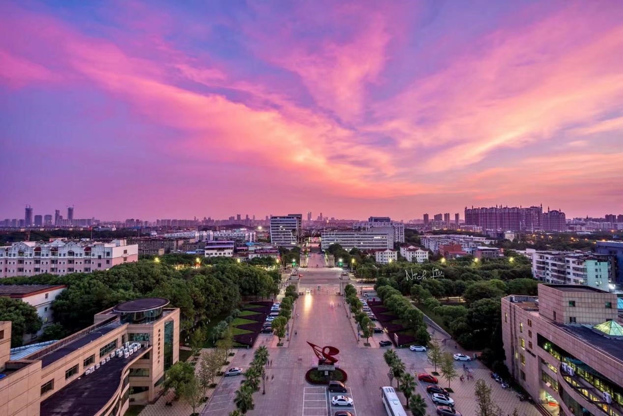 黄昏降临,江财的天空被粉紫色的晚霞笼罩。似涅重生的凤凰,展开双翼,欲驰骋千里;又似傲人的孔雀,向大地上的人们展示其美丽动人的姿态。而夜空下的江财,一片安宁祥和。