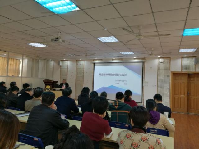 3月19日下午,大学生活动中心301团体辅导室里座无虚席,来自江西省精神卫生中心心理科主治医师吕品为学校学工干部、心理督导员、心理健康教育专兼职教师、保卫处和物业相关人员等做了题为《常见精神障碍的识别与应对》的讲座。