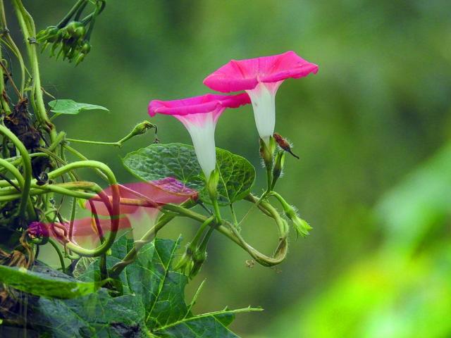 看着正在争妍斗艳的百花们,掌叶牵牛打算展示自己作为领导者的风采。随着牵牛花的一声令下,春风开始奏乐,无数的牵牛花在阳光下翩翩起舞,还没有完全睡醒的花朵也在这一刻悄悄的绽放。一曲毕,又是一曲来,蟋蟀与知了哼起了熟悉的歌谣,这一次的百花不再沉寂,绽放着形成了最美的风景?这是一片以紫色为主的花海,它牢牢地将碧绿色的草原覆盖,在此起彼伏的山丘上,牵牛花藤交错缠绕,在花叶的收敛下,形成了每一条路程不同的林间小道,道路上行走的游客们,便是花园的主人。
