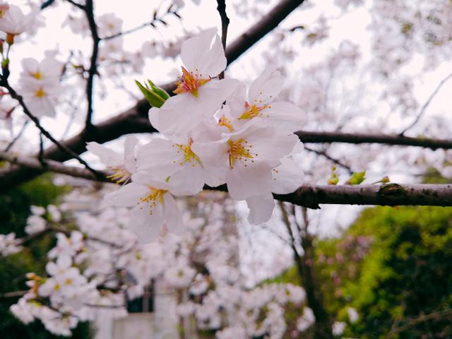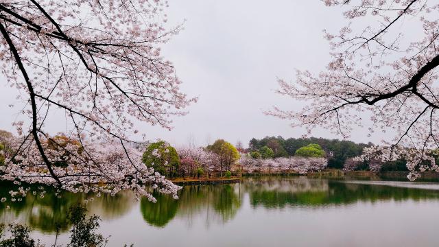三月的林科院,沿路盛开着粉白与纯白的樱花,绵延几百米。花枝交错,花瓣相贴,沿路的樱花宛若天然的长廊,为游人遮挡着飘飞的雨丝。微风拂过,花瓣轻颤,仿佛彼此在窃窃私语,议论着南昌的阴雨天气何时放晴。不知是突然风大还是游人的声音惊扰了花间的精灵,几片花瓣带着优雅的舞姿,翩然落下,在石板地上缀下点点粉白,纯洁美丽,让人不忍践踏。