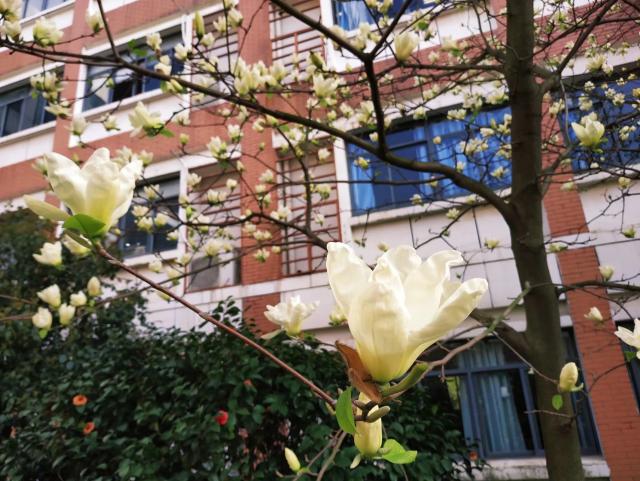 风,停了,满地樱红,枝头的白玉兰开的正好,转身,我也离开了这陪伴我三年的小道,等到下次再见,或许又是下一个樱花铺满的时节。