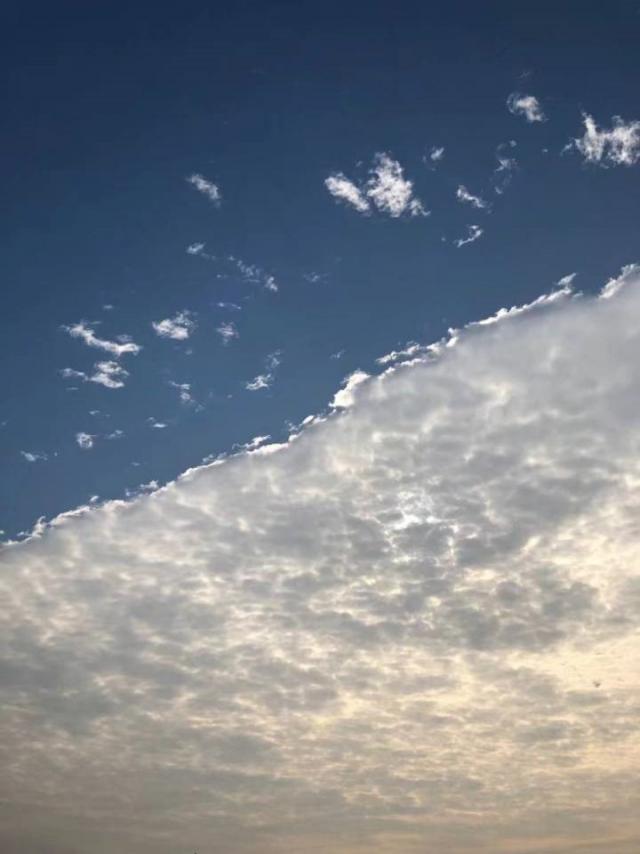 晨曦徐徐拉开了帷幕,打开窗,又是一个绚丽多彩的早晨,带着清新降临。“莫道行人早,更有早行人”,即便是早晨的六点,也已经有不少人行走在街道上,勤奋的不只是普照大地的太阳,还有我们的江财学子。坐落在空中的云,被一道无形的刀切割开来,一边是青空,另一半是白幕。