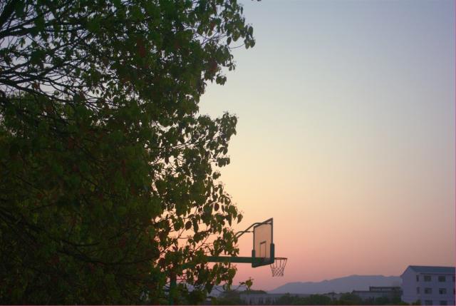 夕阳将出未出,宇宙是世上最出色的画师,只渐渐晕染开这青空粉黛。树丛掩映着昨日喧嚣,球场上的热血呐喊与挥汗如雨都被它尽收眼底,它悄悄藏起少年人整日的朝气活力,打算用寒露做成的漂亮礼盒包装好送给次日的太阳。都说初生的太阳最令人充满希望,那这即将从篮框中升起的太阳所带来的振奋便是喷薄而出。远山边界似磨毛的玻璃,愈瞧见愈发迷离,它只小小地躲在矮房身后让人误以为它没有庞大的身躯。期待今天的你。