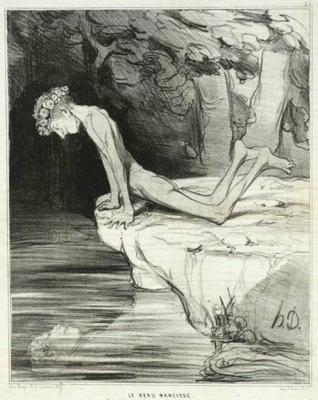 大家一定对这幅画或多或少有一定的了解,没错这幅画里的翩翩美少男就是西方神话里的纳喀索斯。纳喀索斯英译为水仙花,自恋者。如同名字,这位美少年是一位自恋者,他的典故结局也是化作了一朵池塘边垂怜的鹅黄水仙花。