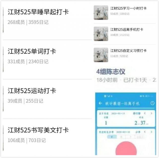 本项活动由工商管理学院、财税与公共管理学院等六个学院心协联合开展,分为“运动、远离手机、学习一小时、早睡早起、书写美文、背单词、自定义习惯”七个不同的打卡内容,同学们自行组队完成连续7天的内容打卡,参与同学超700人,为漫长假期中学习热情骤减、学习效率不高、“拖延症”缠绕的同学提供了有效的解决方案,提高学习的动力,加强自我管理能力。